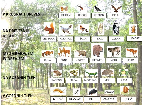 Živalski svet na tem območju se je prilagodil spremenjeni krajini in predstavlja zelo pomembno vlogo pri ohranjanju ravnovesja v naravi. Med dvoživkami lahko srečamo močerada in žabe (krastače, urhi in rjave žabe), od kač pa lahko, če imamo srečo, vidimo belouško ter zelenca. V gozdu in na poljih kaj hitro srečamo rovke – najmanjše sesalce, ki pri nas preživijo največ eno zimo. Prav tako je v naših krajih zadovoljen tudi beloprsi jež. Med kunami srečami kuno zlatico in kuno belico, ki se ločita po barvi lise na prsih. Med največjimi kunami pri nas pa se nahaja jazbec. Lisica je v teh krajih reden predstavnik zveri in spada v družino psov. Med predstavniki kopitarjev se pri nas lahko nadejamo divje svinje in srnjadi. Najbolj poznane ptice, ki nas znajo gostoljubno sprejeti, pa so kobilar, detel, smrdokavra, sinice, krokar, sokoli, kanje, drozgi, kalini, lesna in pegasta sova ter tudi mala uharica.